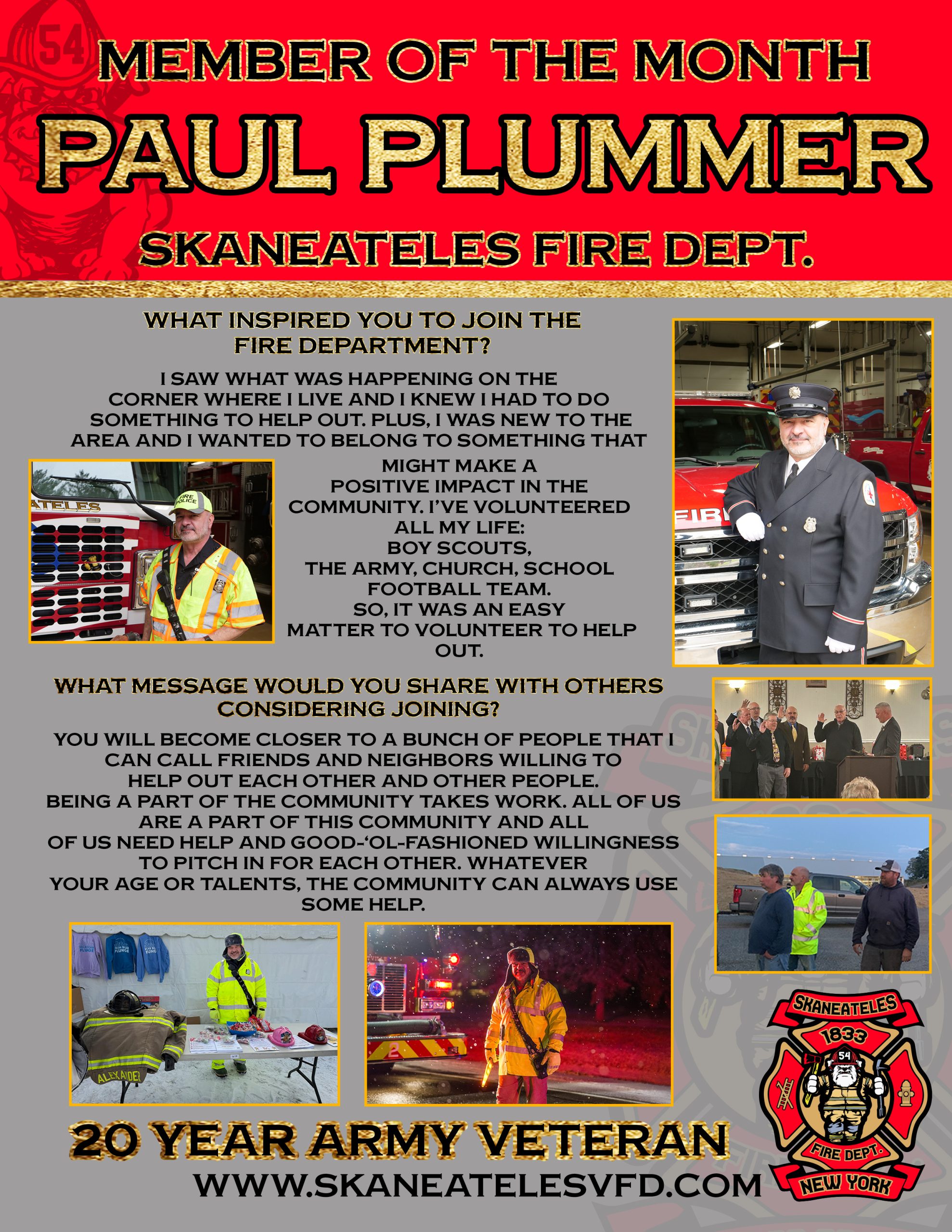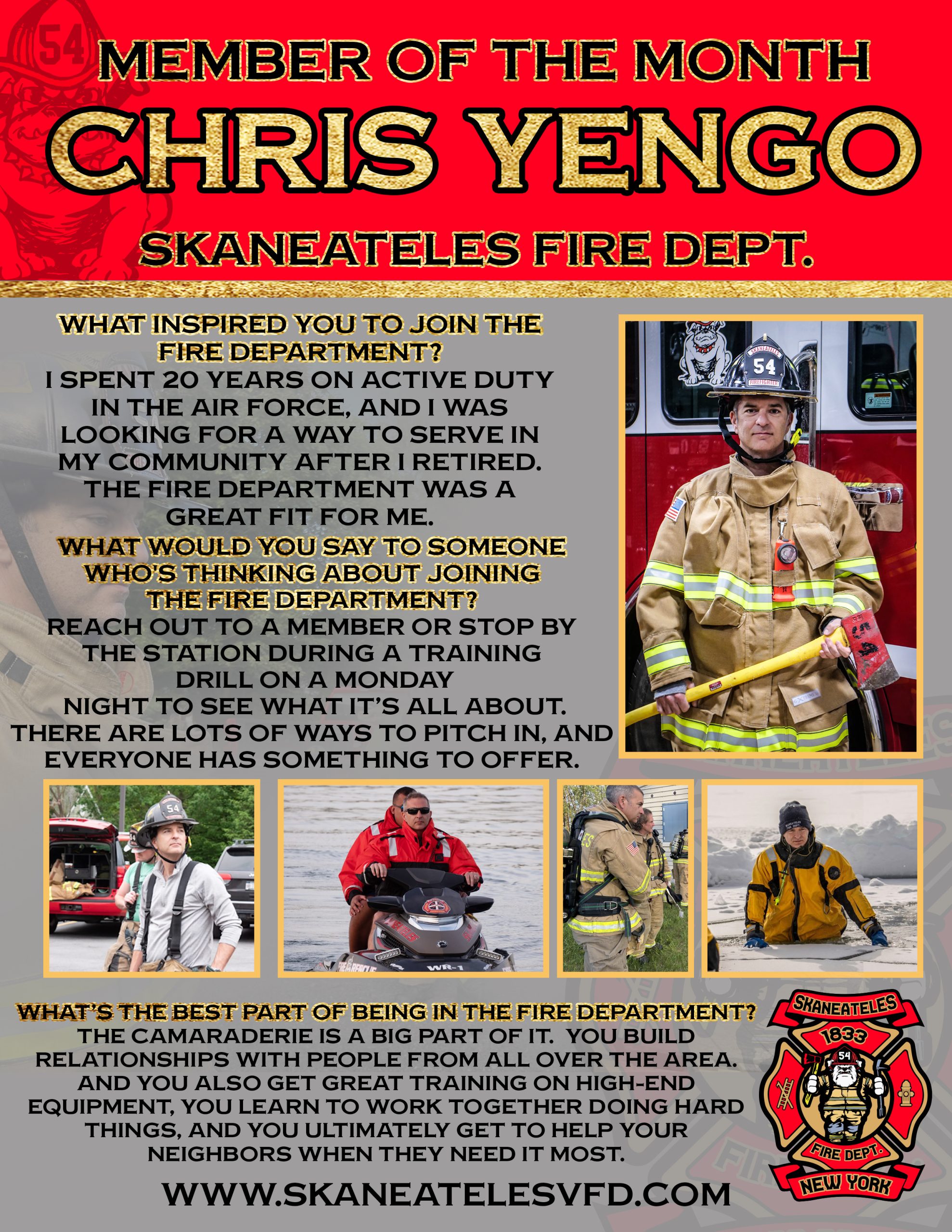 The Skaneateles Volunteer Fire Department serves the Town and Village of Skaneateles, NY with a team of around 100 volunteer members.
